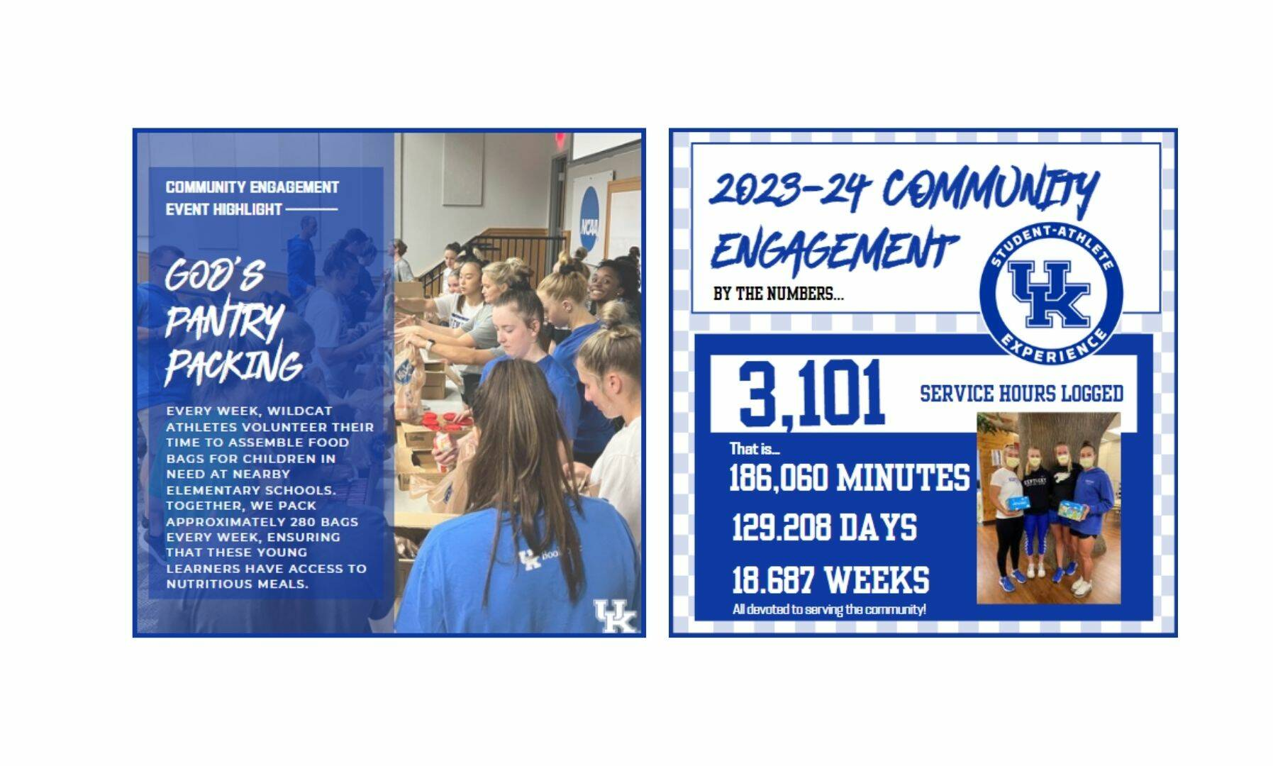 University of Kentucky student-athletes are encouraged to actively engage with our local, regional, national, and international communities. By giving back, they can make a meaningful difference in the lives of others and enhance the community’s overall well-being. UK Athletics has strategically developed partnerships aimed at empowering student-athletes to contribute and participate in impactful community engagement initiatives.